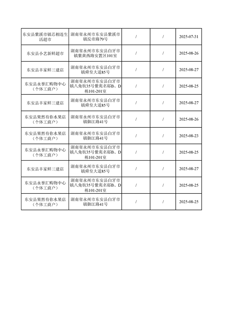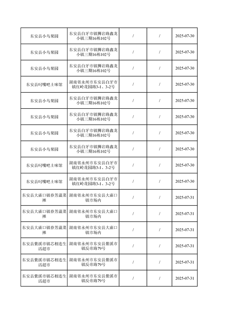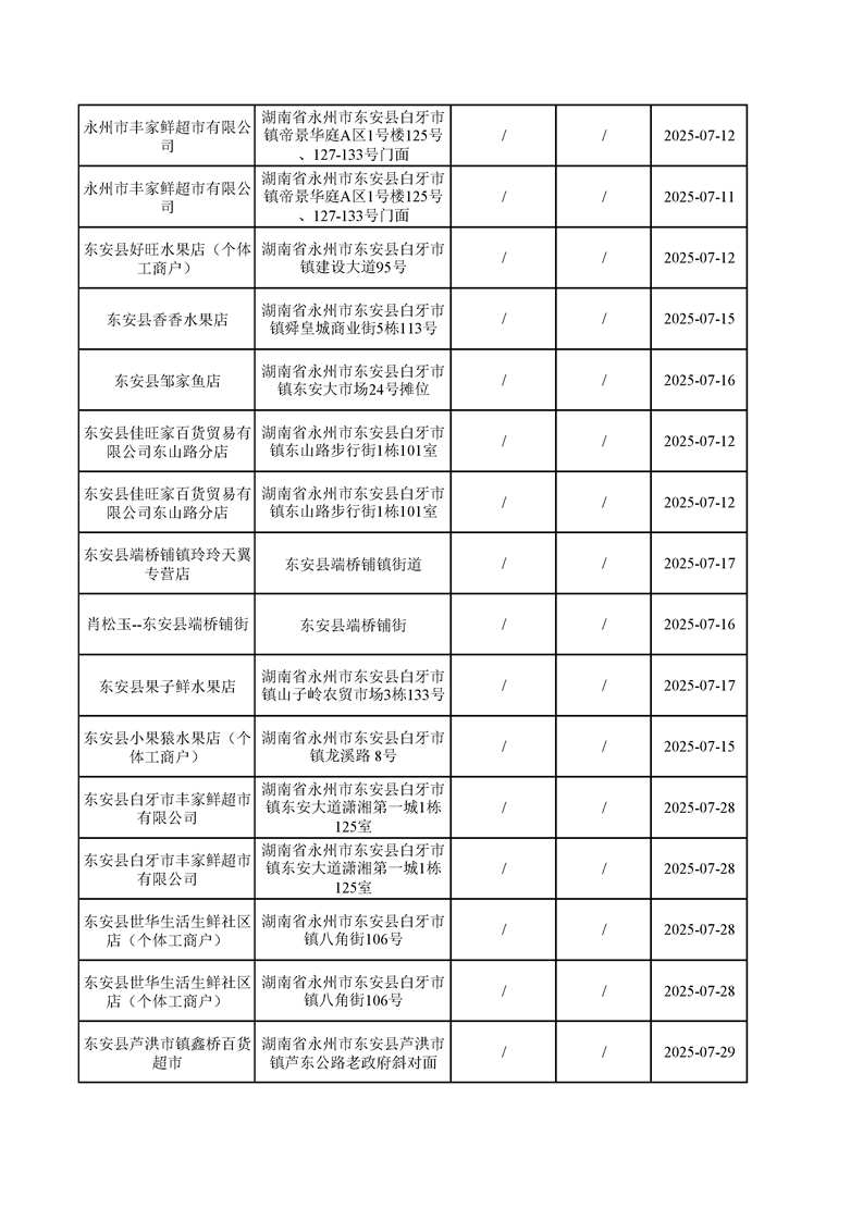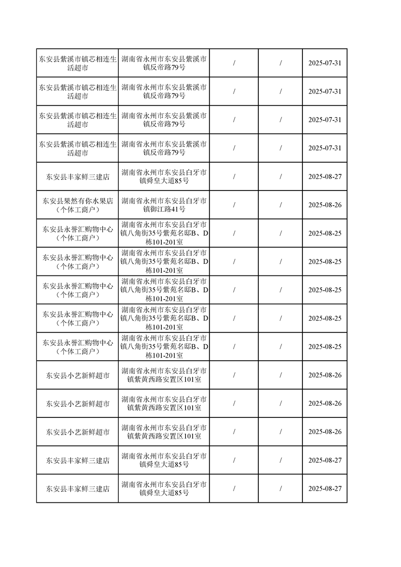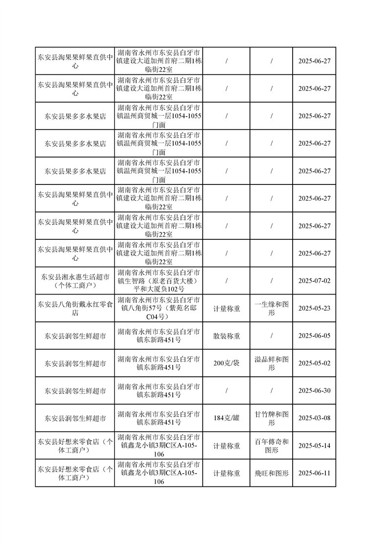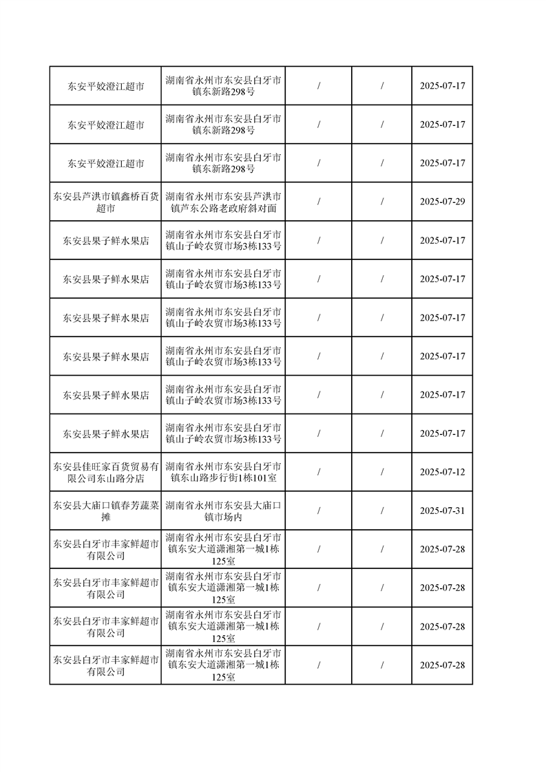 名称: 东安县市场监督管理局关于2025年第三季度东安县食品安全监督抽检情况公示(第六期)
