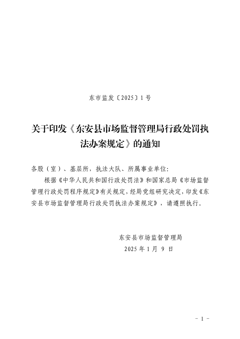 关于印发《东安县市场监督管理局行政处罚执法办案规定》的通知