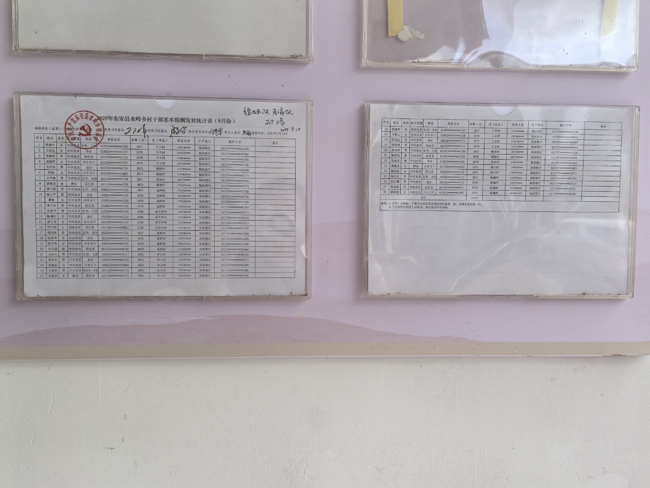 2025年东安县水岭乡村干部基本报酬发放统计表(9月份)