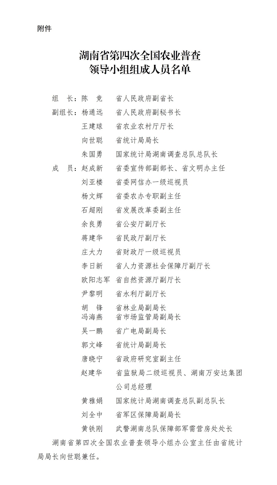 附件:湖南省第四次全国农业普查领导小组组成人员名单