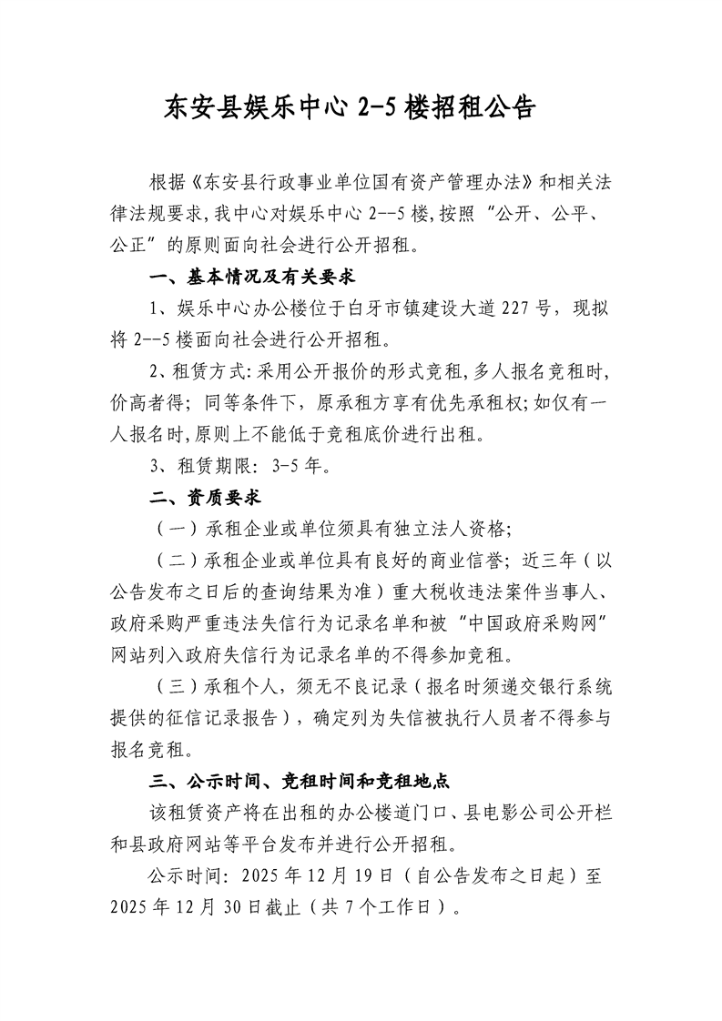 发文机关: 东安县文化旅游广电体育局 发文日期: 2025-12-19