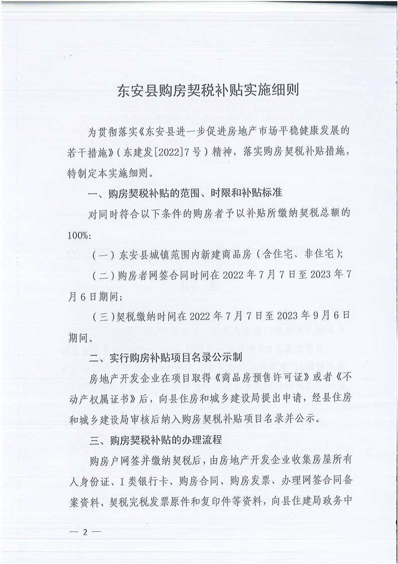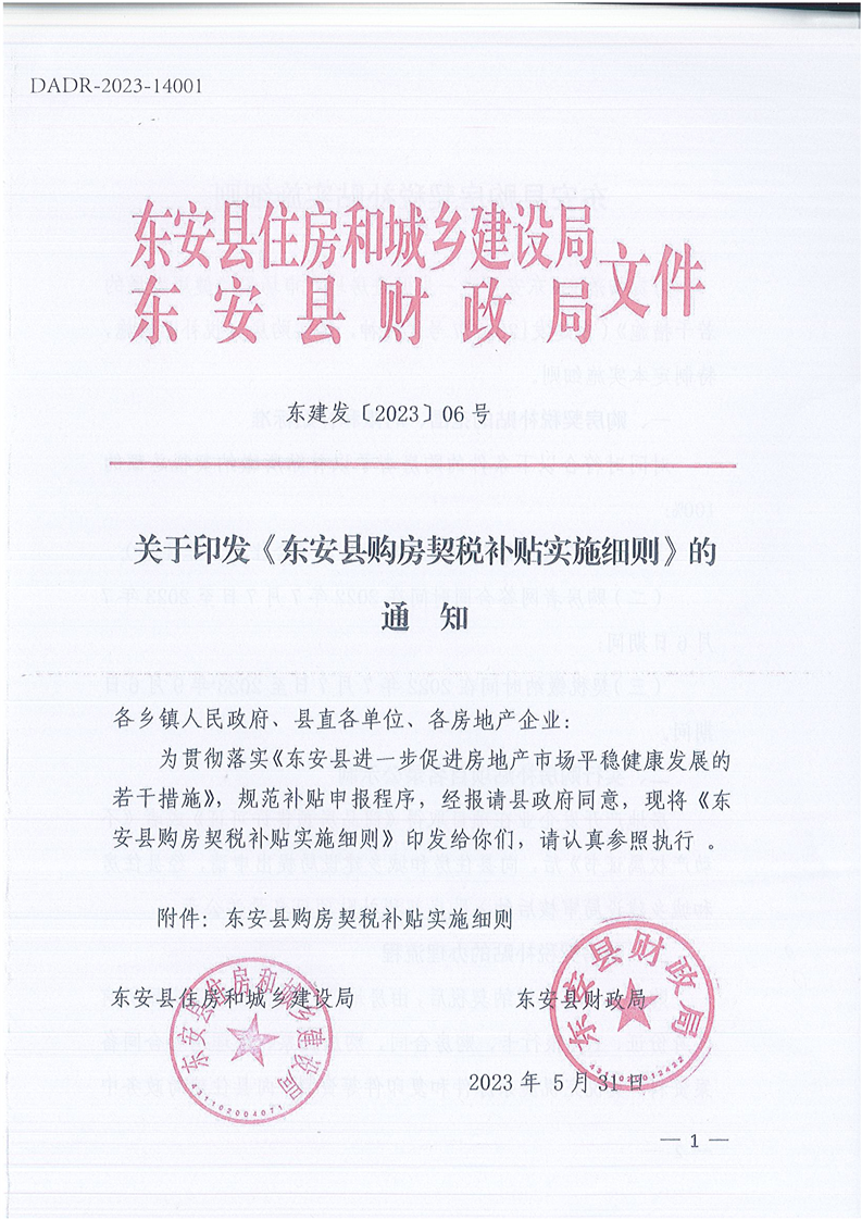 名称: 关于印发《东安县购房契税补贴实施细则》的通知