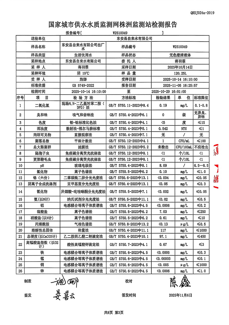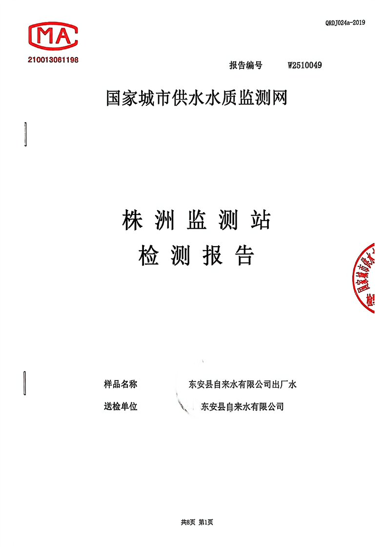 名称: 东安县自来水公司2025年10月全分析水质检测报告